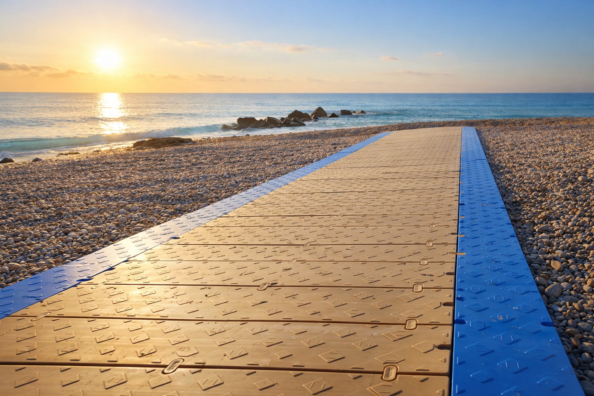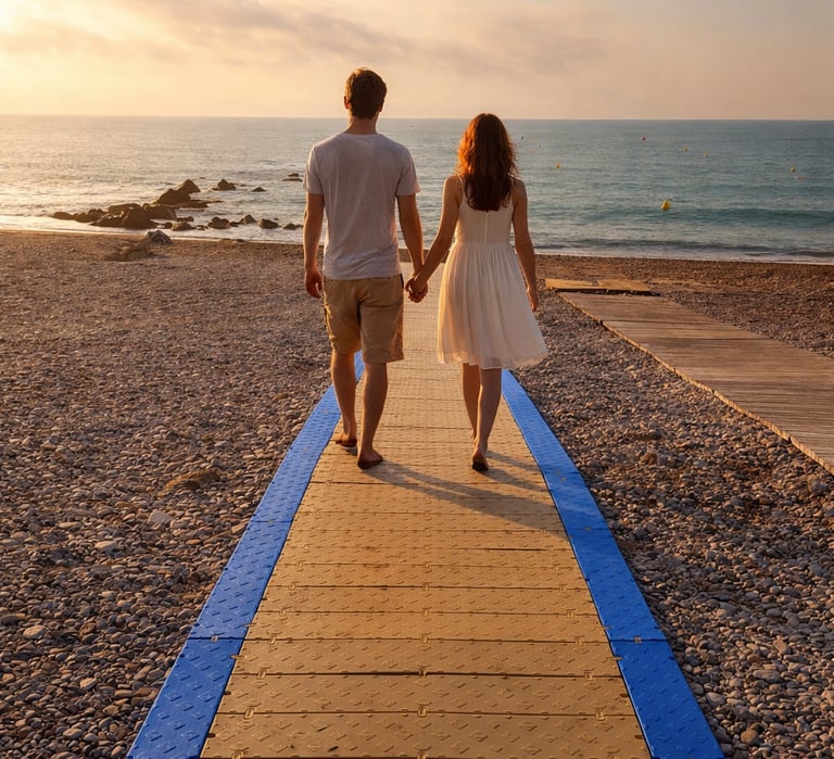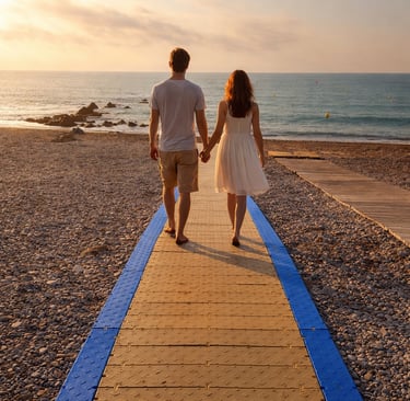 FLEXWAY® es un sistema modular completo fabricado en polietileno de alta densidad (PE-HD), diseñado específicamente para crear accesos peatonales duraderos, seguros y sostenibles en playas y entornos naturales.