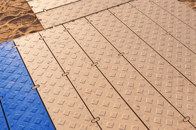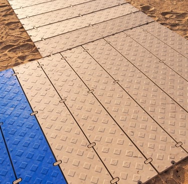 FLEXWAY® es un sistema modular completo fabricado en polietileno de alta densidad (PE-HD), diseñado específicamente para crear accesos peatonales duraderos, seguros y sostenibles en playas y entornos naturales.